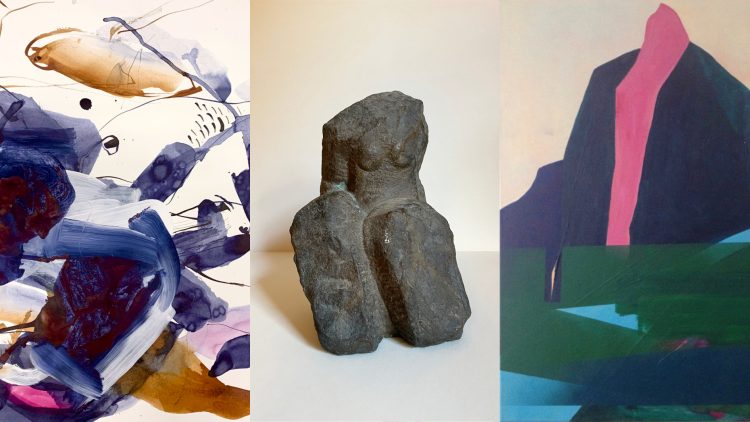 Der Kunstsalon feiert den Abschluss seiner dreimonatigen Ausstellung Blickwinkel mit Skulpturen von Rebecca Lomfeld und Malerei von Beate Baumholzer und Karin Grote.